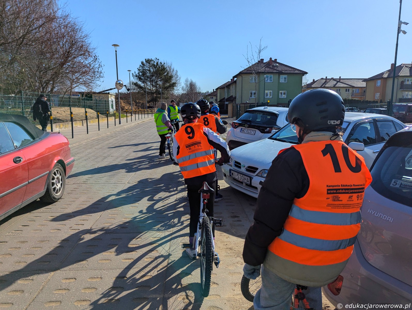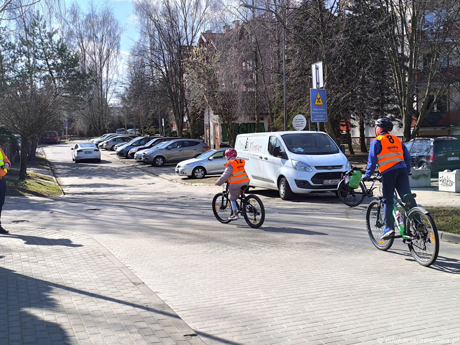 Przejazd próbny – skręt w lewo dwójki uczniów, którzy zjechali się na trasie. Tu jeszcze numerki i kolejność nie miały znaczenia.