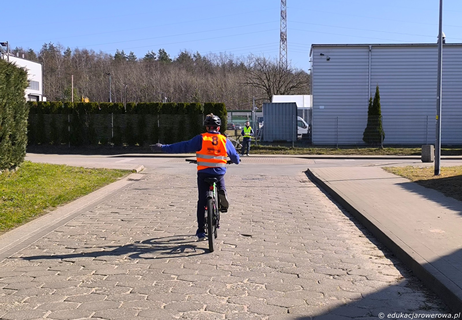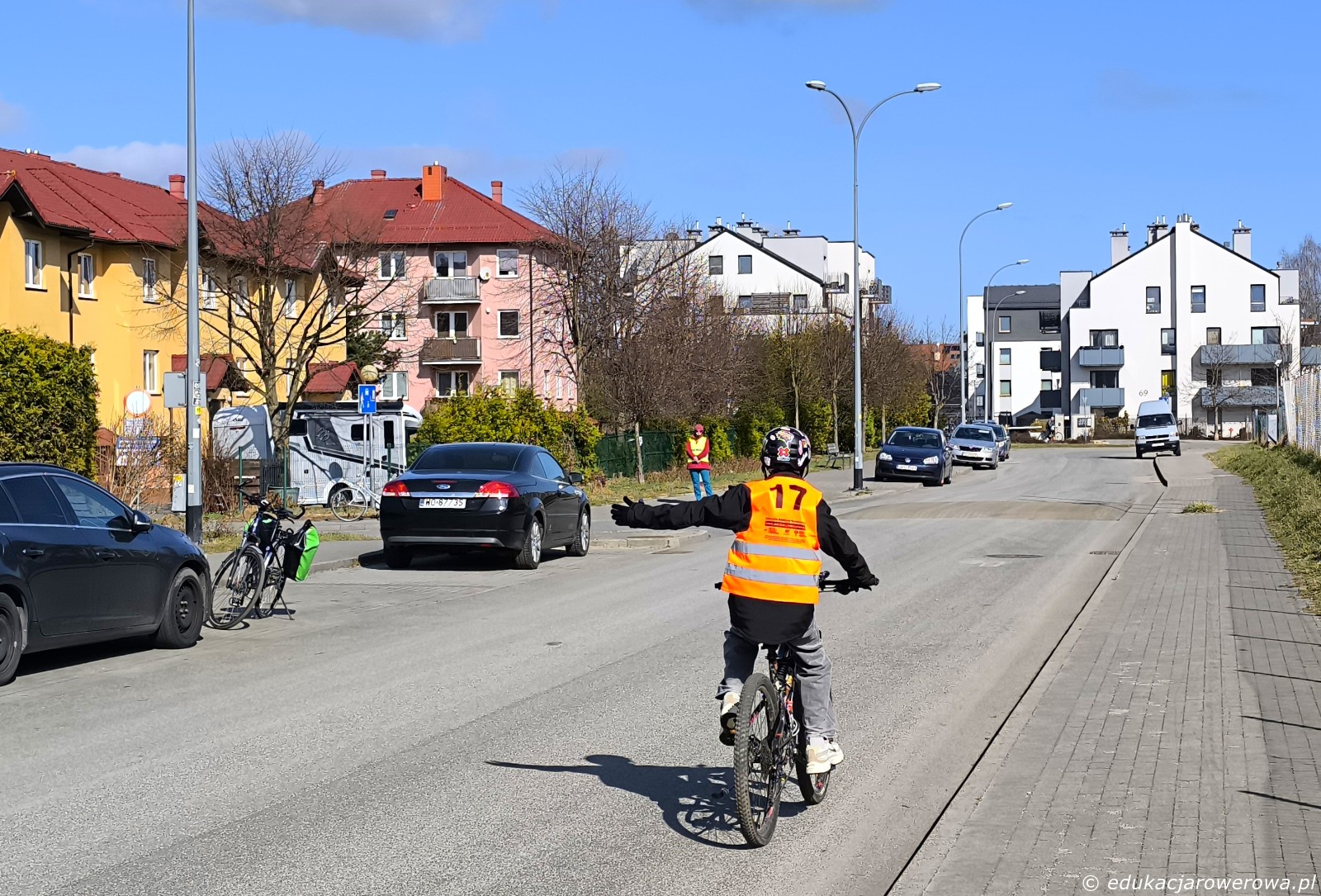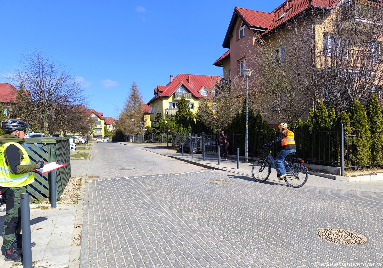 Przejazd próbny – skręt w lewo z jezdni na drogę dla rowerów.