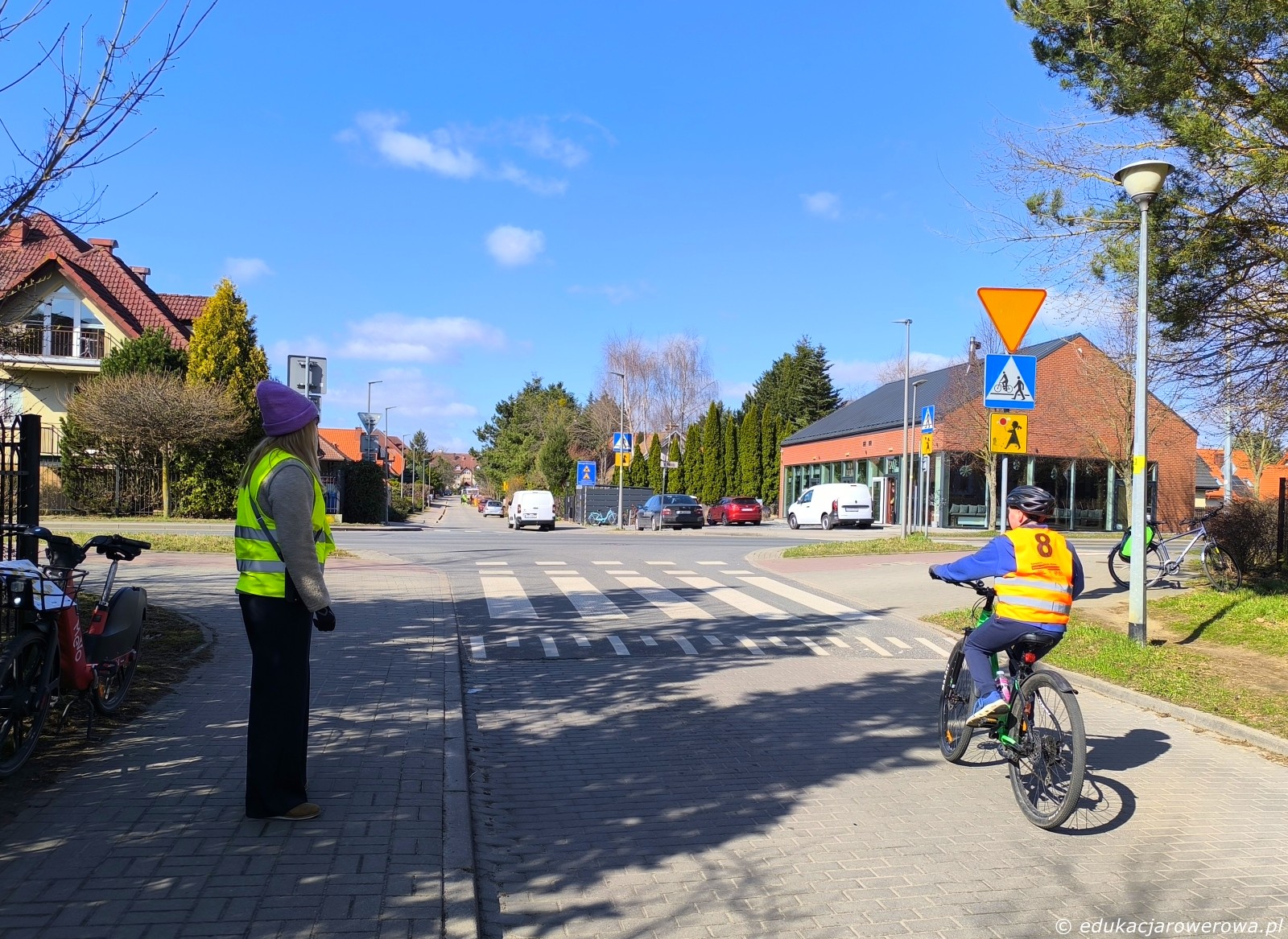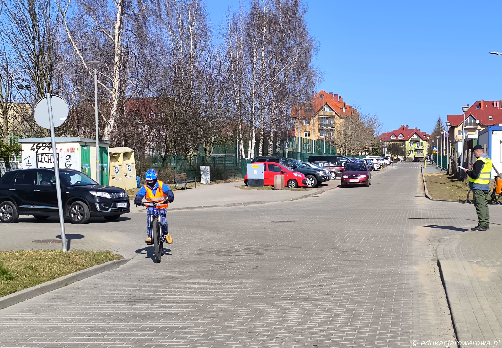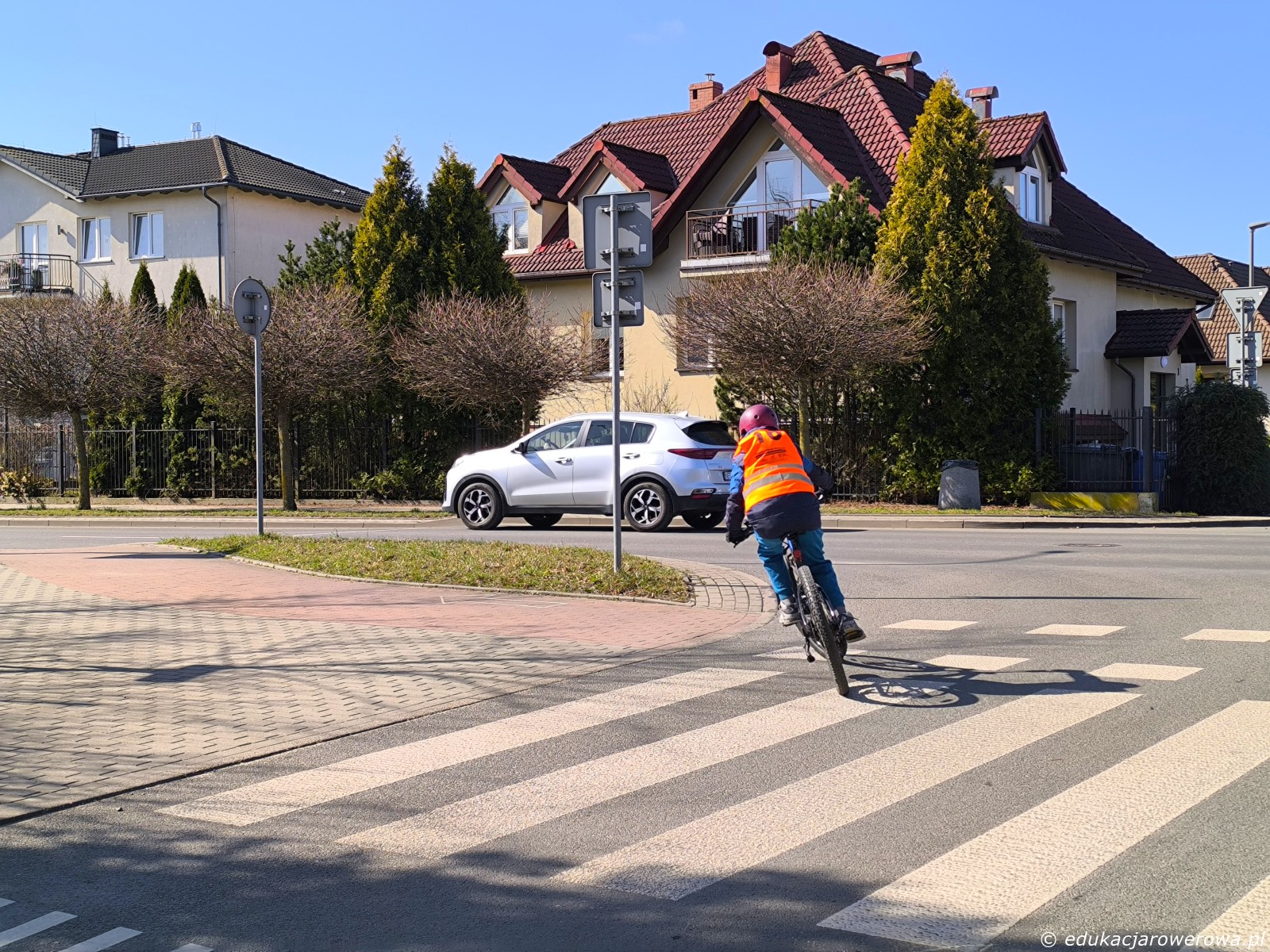 Po skręcie w lewo uczniowie jechali przez pewien czas na wprost, mijając po drodze dwa skrzyżowania równorzędne, ale bez oceny.
