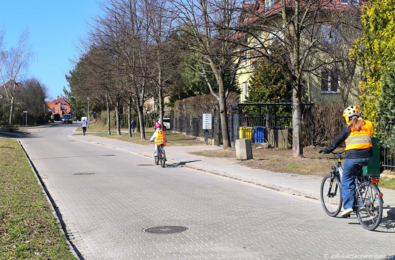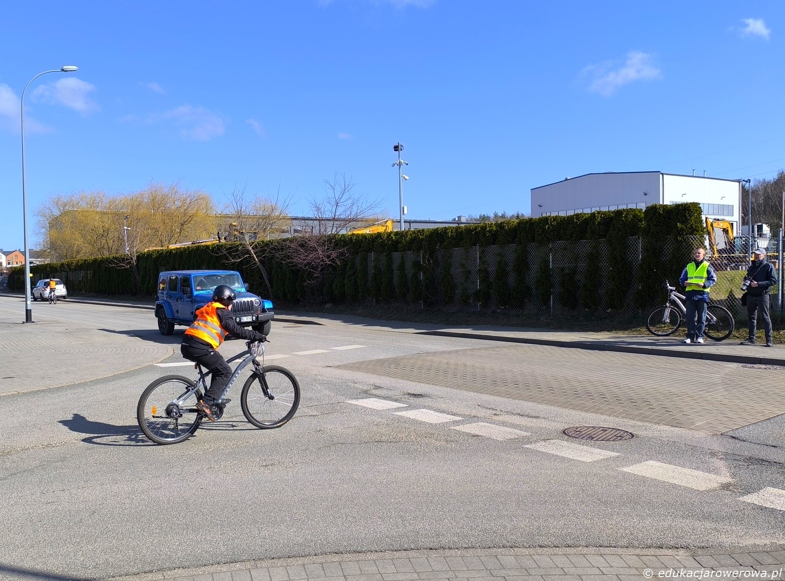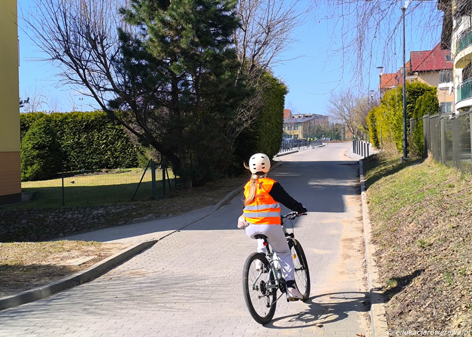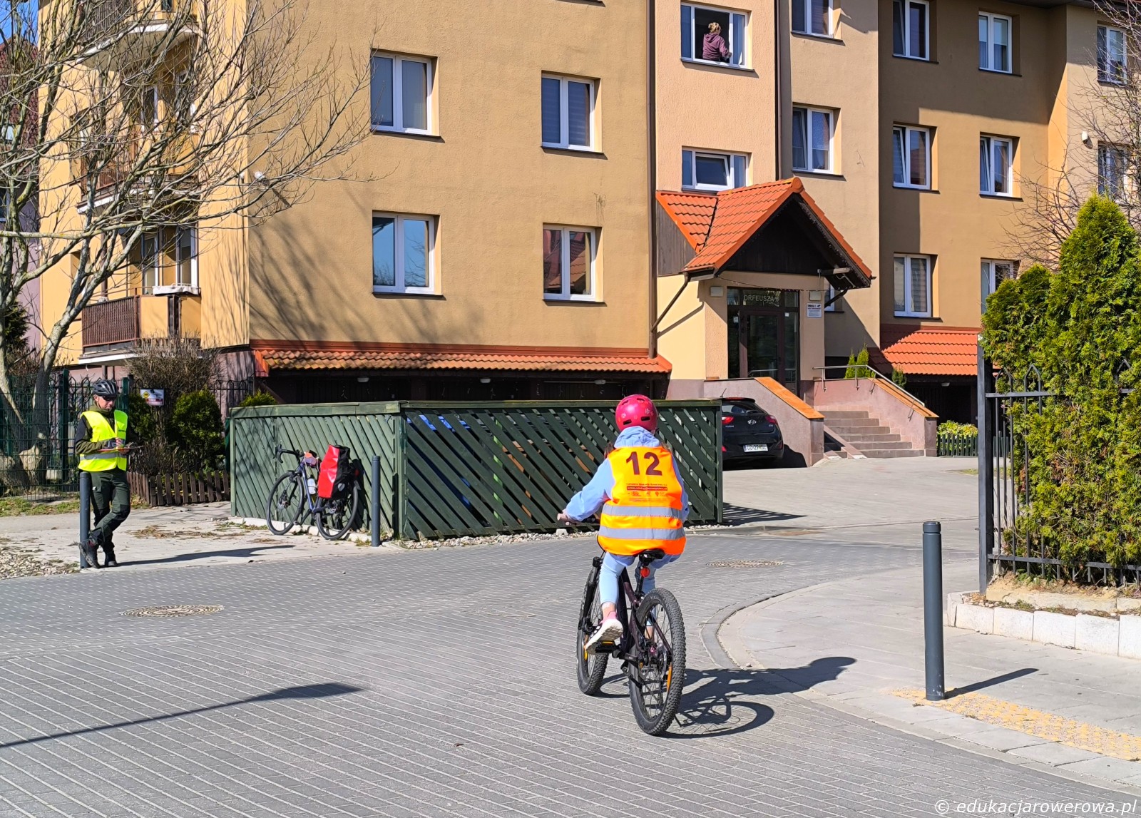 Po skręcie w lewo uczniowie jechali przez pewien czas na wprost, mijając po drodze dwa skrzyżowania równorzędne, ale bez oceny.