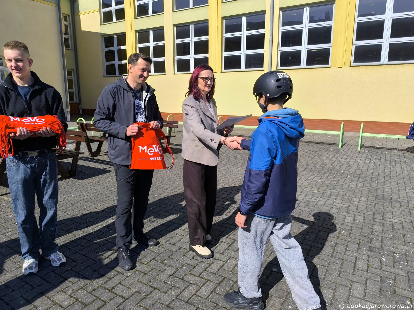 Dzień wcześniej uczniowie szkoły wzięli udział w zajęciach praktycznych w ruchu drogowym, połączonych z serwisowaniem roweru. W dniu egzaminu odbyły się dwa przejazdy szkoleniowe z omówieniem wszystkich manewrów, a potem jeszcze indywidualna jazda treningowa, by dobrze zapamiętać trasę. Wszyscy ukończyli egzamin z pozytywnym wynikiem, co najbardziej nas cieszy, za co otrzymali także dyplomy i upominki od Mevo – Rower Metropolitalny.