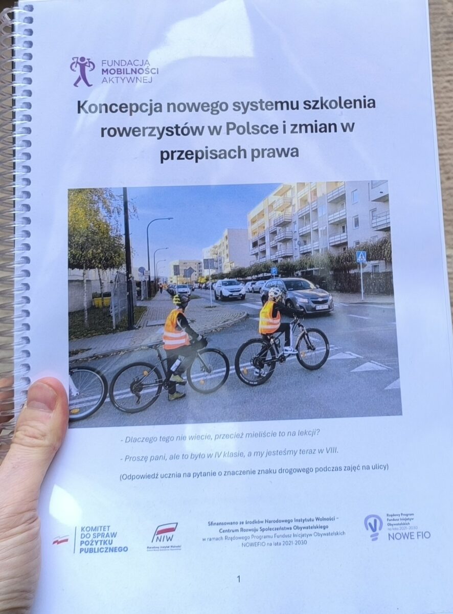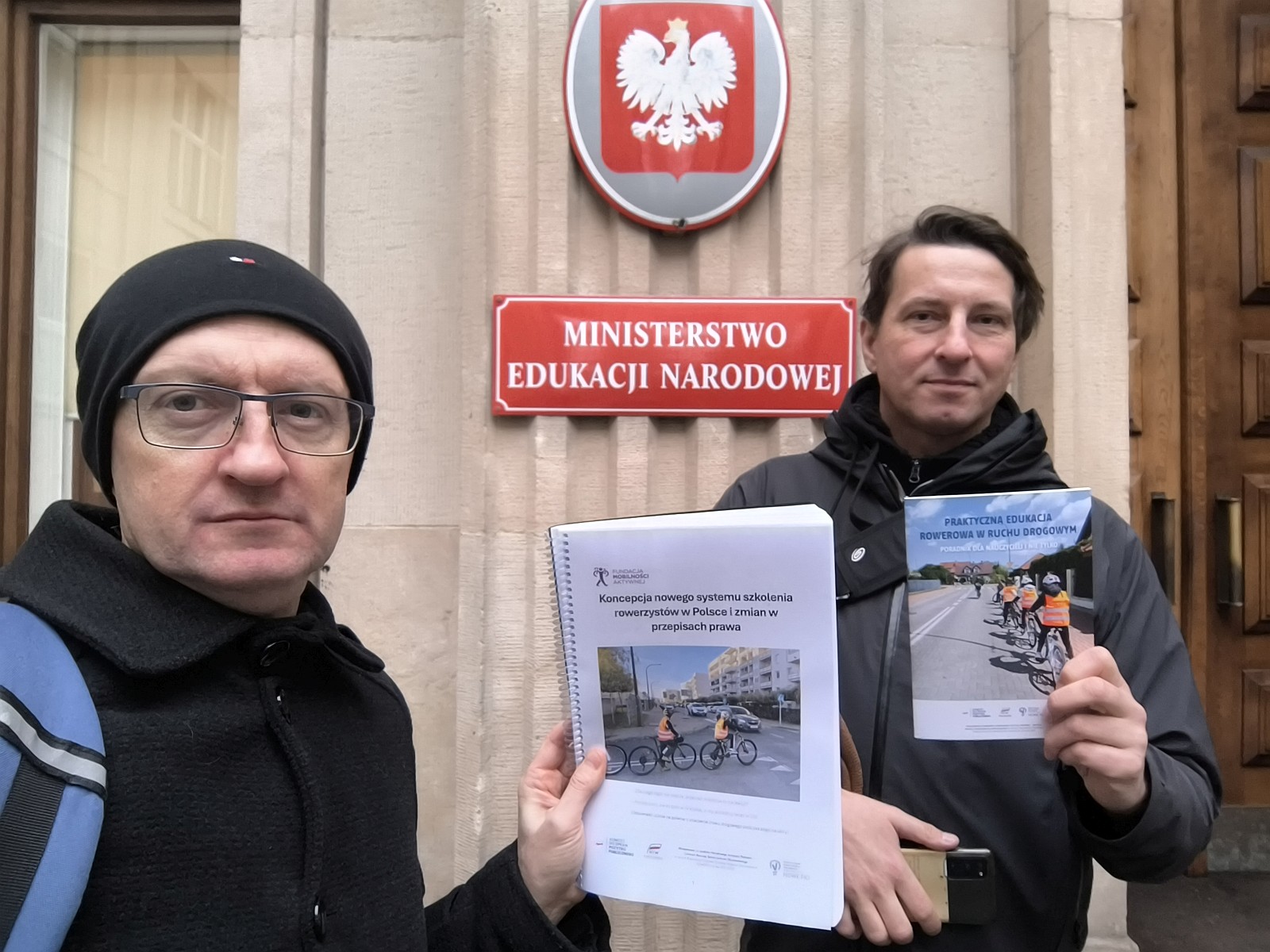 Po wielu tygodniach intensywnej pracy zakończyliśmy z sukcesem opracowywanie dokumentu Koncepcja nowego systemu szkolenia rowerzystów w Polsce i zmian w przepisach prawa, który we czwartek 18.12.2025 r. przekazaliśmy do Ministerstwa Infrastruktury oraz do Ministerstwa Edukacji Narodowej. Koncepcja to 111 stron analizy dlaczego obecny system edukacji rowerowej wymaga gruntownej reformy i co zrobić, by dzieci w Polsce mogły się uczyć w nowoczesny i skuteczny sposób, w prawdziwym ruchu drogowym.