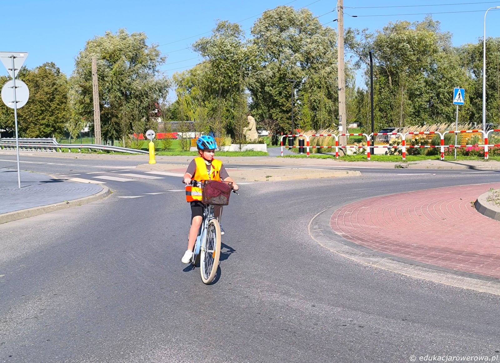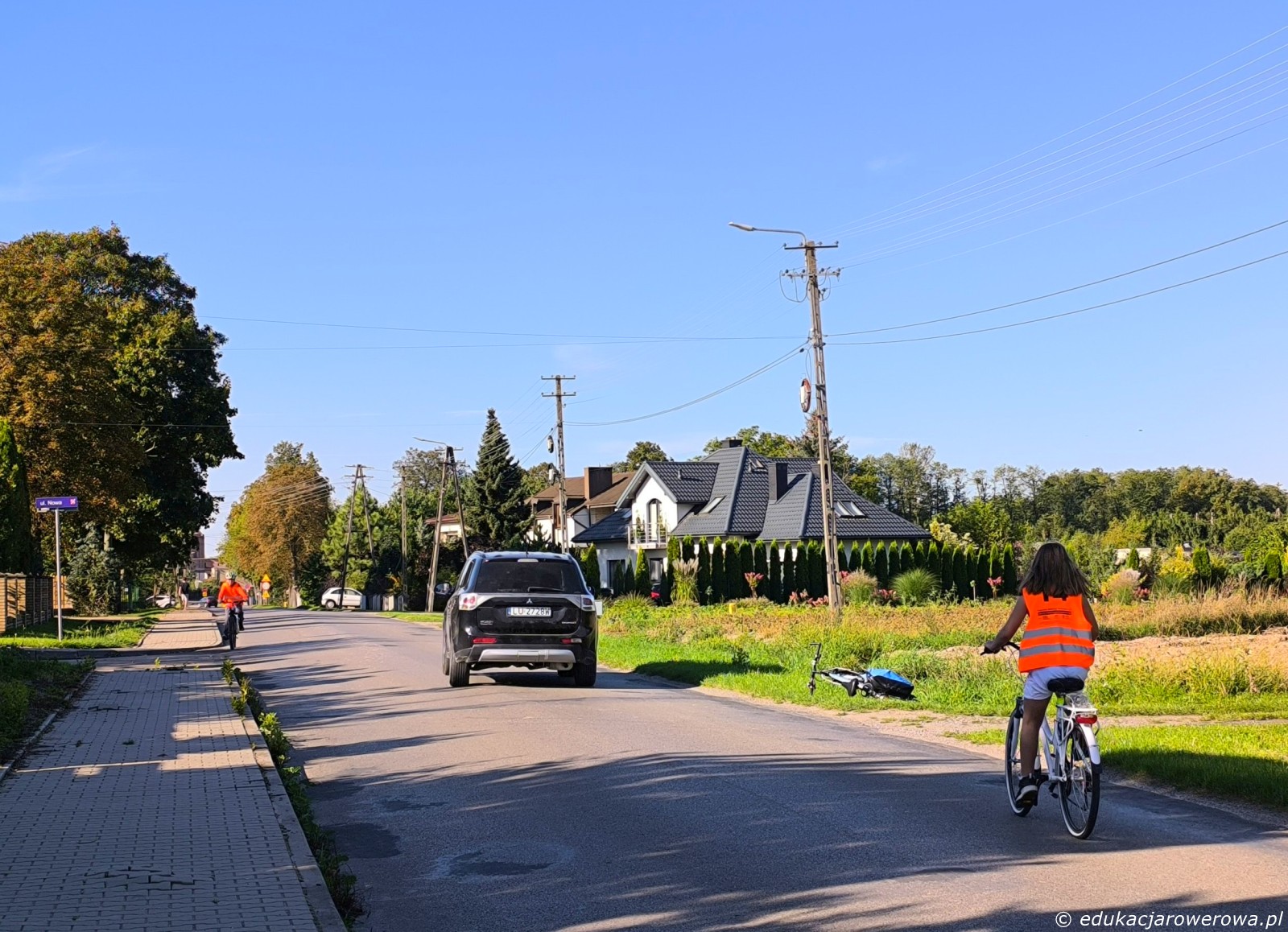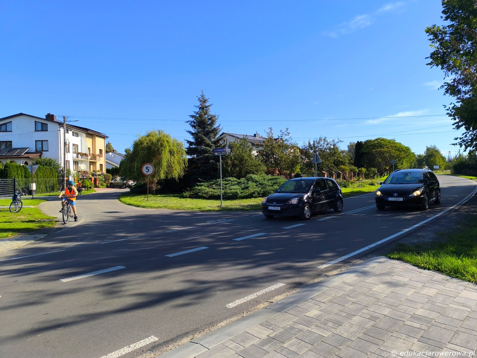 Pierwsze ćwiczenie w pobliżu szkoły, a tam skręcanie w lewo z drogi podporządkowanej, następnie zawracanie, jazda na wprost drogą z pierwszeństwem, zawracanie i na koniec lewoskręt z drogi z pierwszeństwem. Tu uczennica po prawej przed skrętem w lewo ustąpiła pierwszeństwa koleżance jadącej drogą z pierwszeństwem.