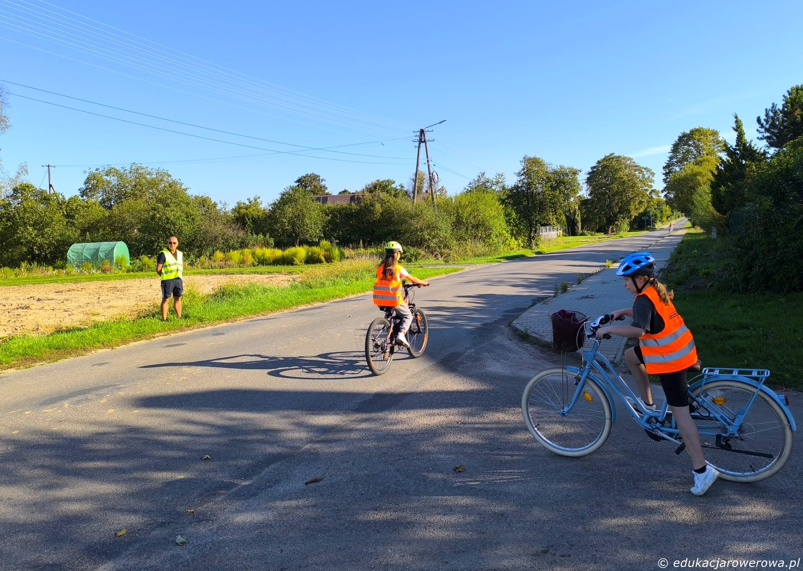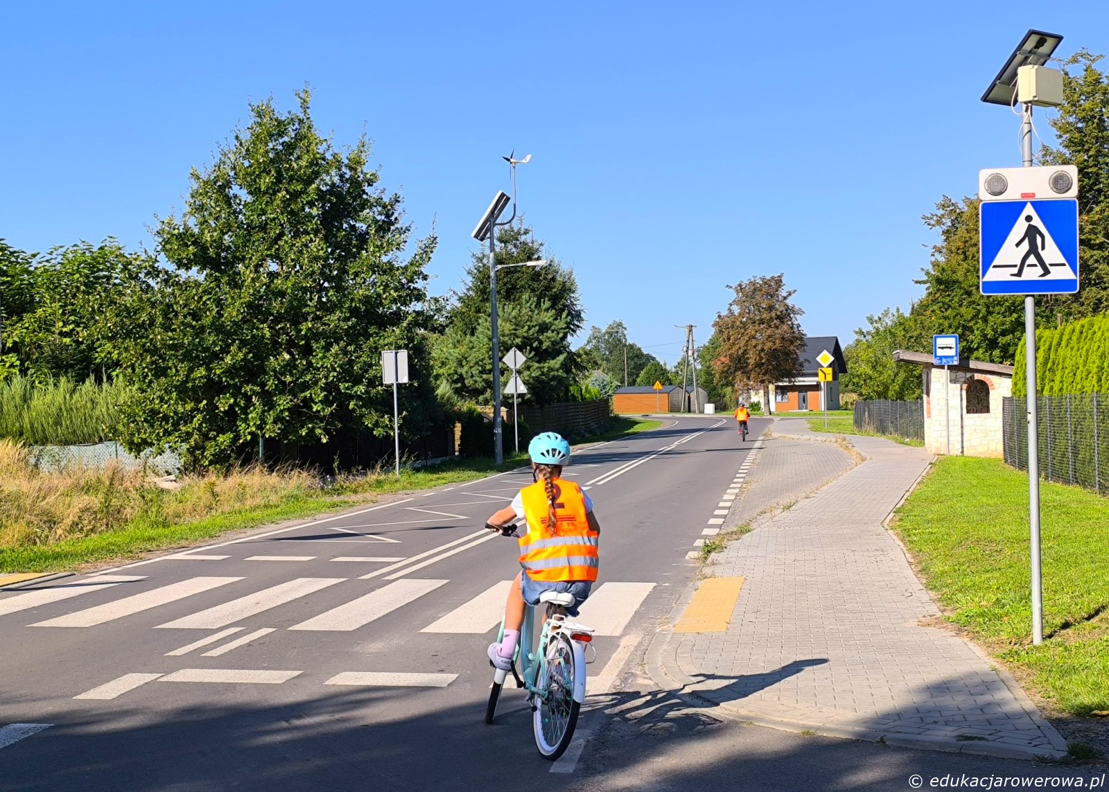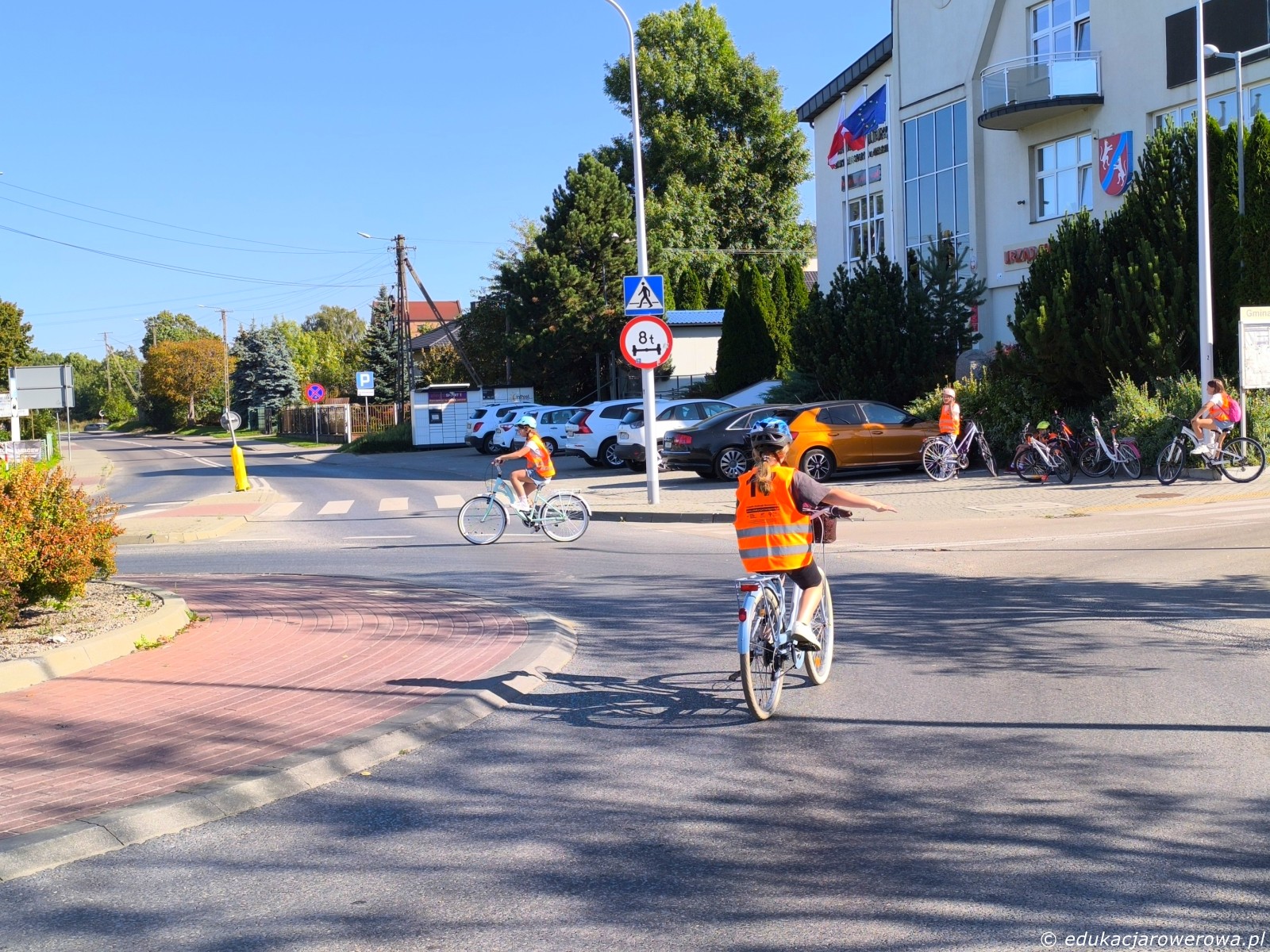 Pierwsze ćwiczenie w pobliżu szkoły, a tam skręcanie w lewo z drogi podporządkowanej, następnie zawracanie, jazda na wprost drogą z pierwszeństwem, zawracanie i na koniec lewoskręt z drogi z pierwszeństwem. Tu uczennica po prawej przed skrętem w lewo ustąpiła pierwszeństwa koleżance jadącej drogą z pierwszeństwem.