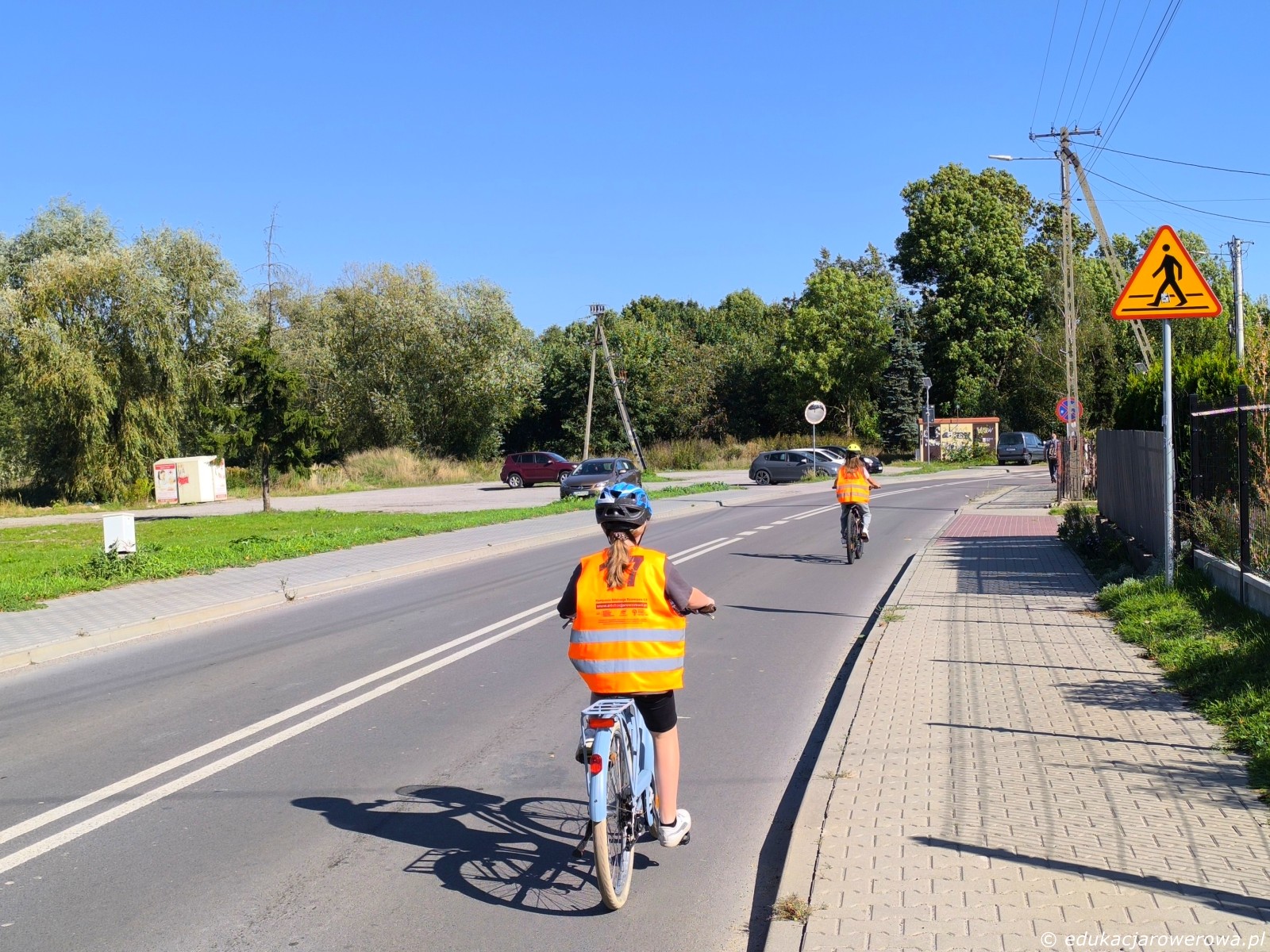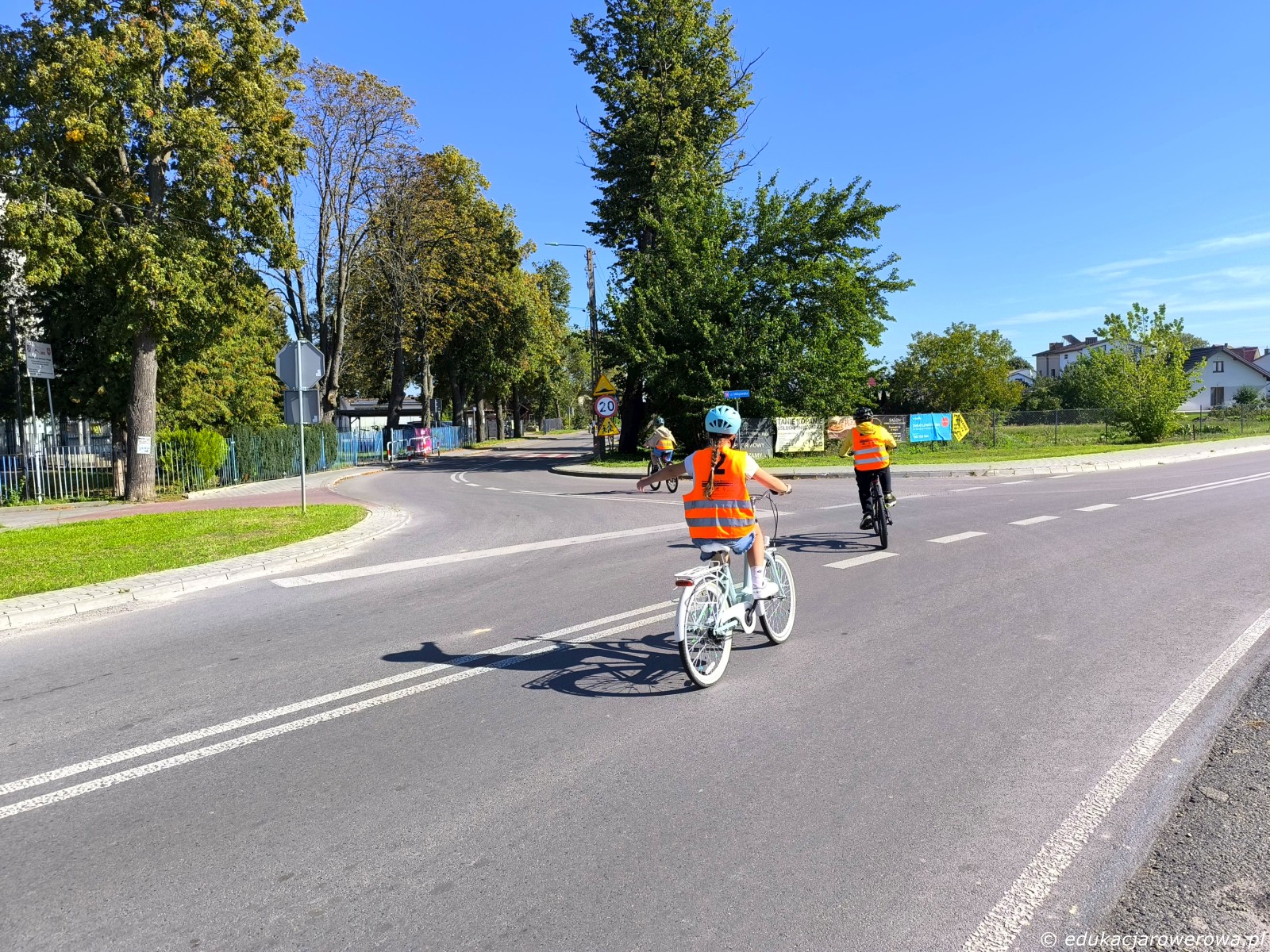 Na powrocie padła propozycja ze strony kilku uczennic, że chcą indywidualnie przejechać trasę od ronda do szkoły. Także zjechaliśmy na jeden ze zjazdów, a uczniowie sami zaczęli jechać po jezdni do szkoły.