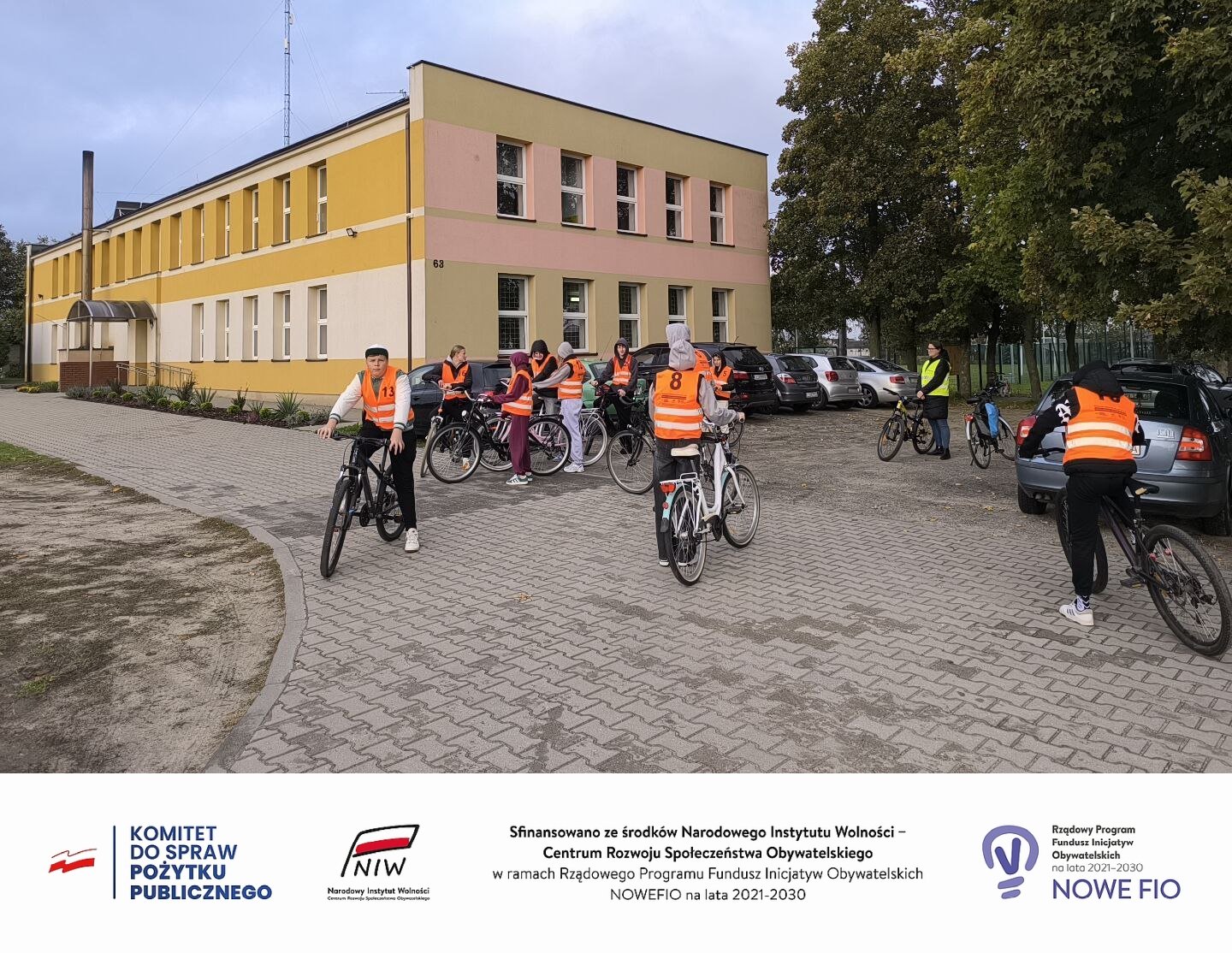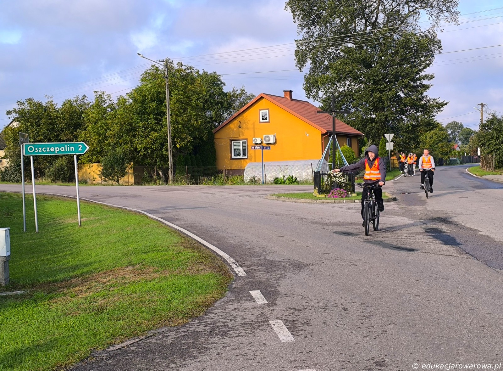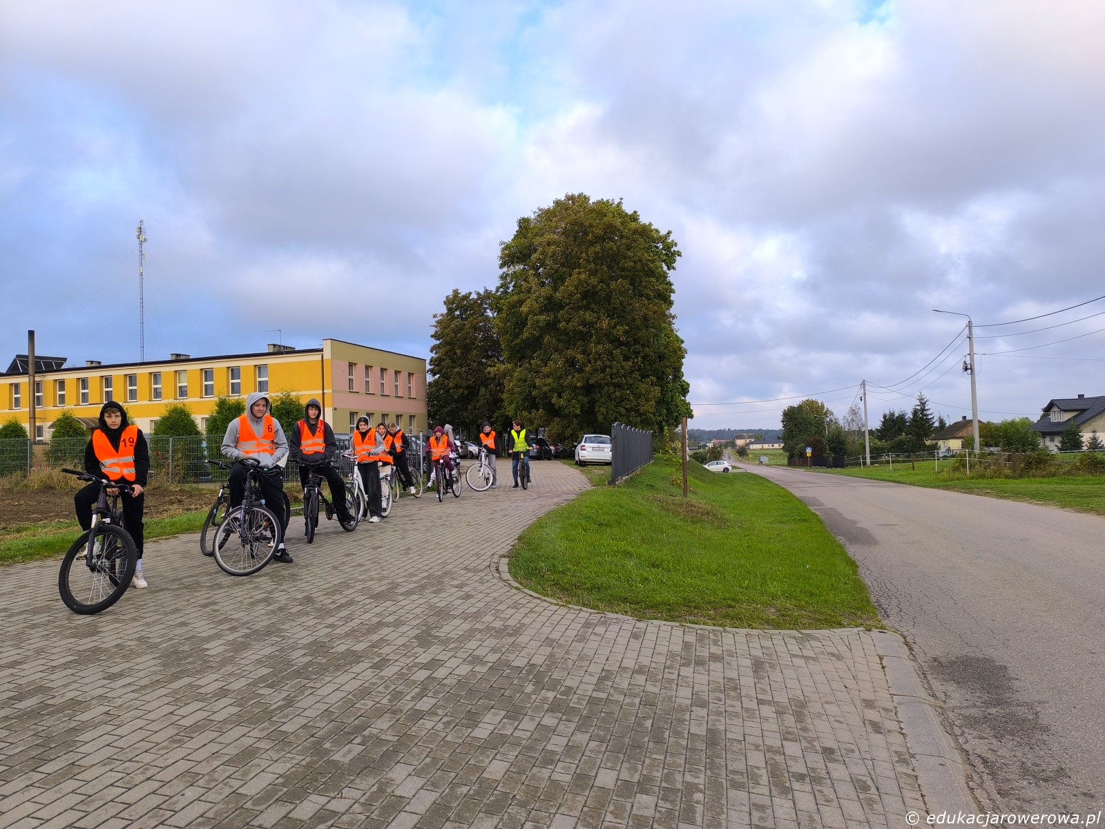 We środę 1 października 2025 roku odwiedziliśmy po raz pierwszy Szkołę Podstawową w Oszczepalinie w powiecie łukowskim. Mimo porannego zimna grupa uczniów i uczennic ze starszych klas naprawdę dała radę i pokonała około 15 km trasę po sąsiednich miejscowościach ćwicząc typowe manewry na skrzyżowaniach. Po praktyce przyszła także kolej na zajęcia w klasie, gdzie rozmawialiśmy o transporcie i bezpieczeństwie w jeździe na rowerze.