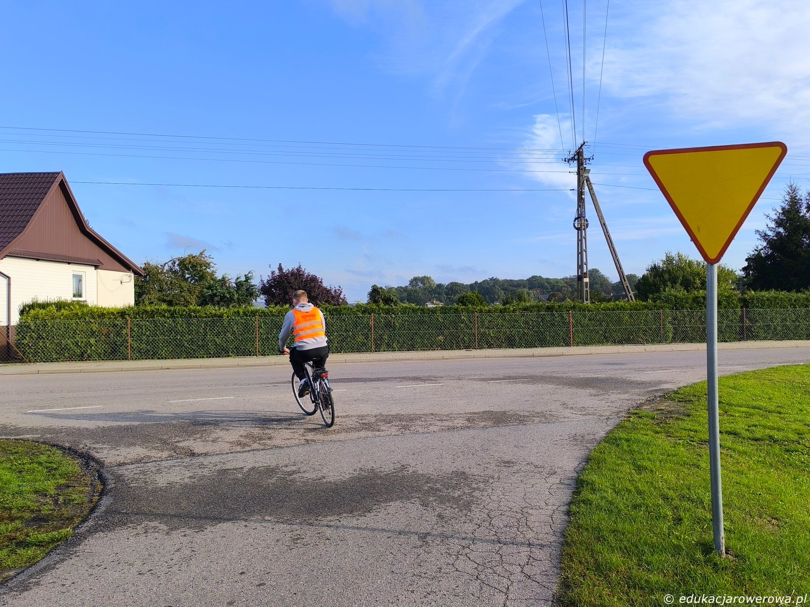 Wjeżdżamy do Woli Osowińskiej i zaczynamy od tego, co dla rowerzysty zmienia wjazd w obszar zabudowany.