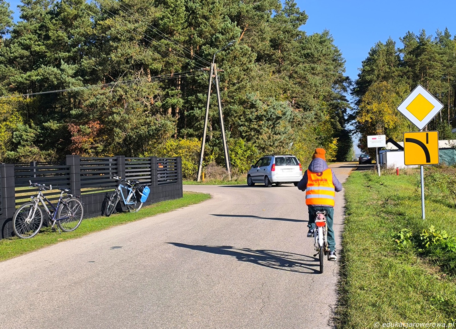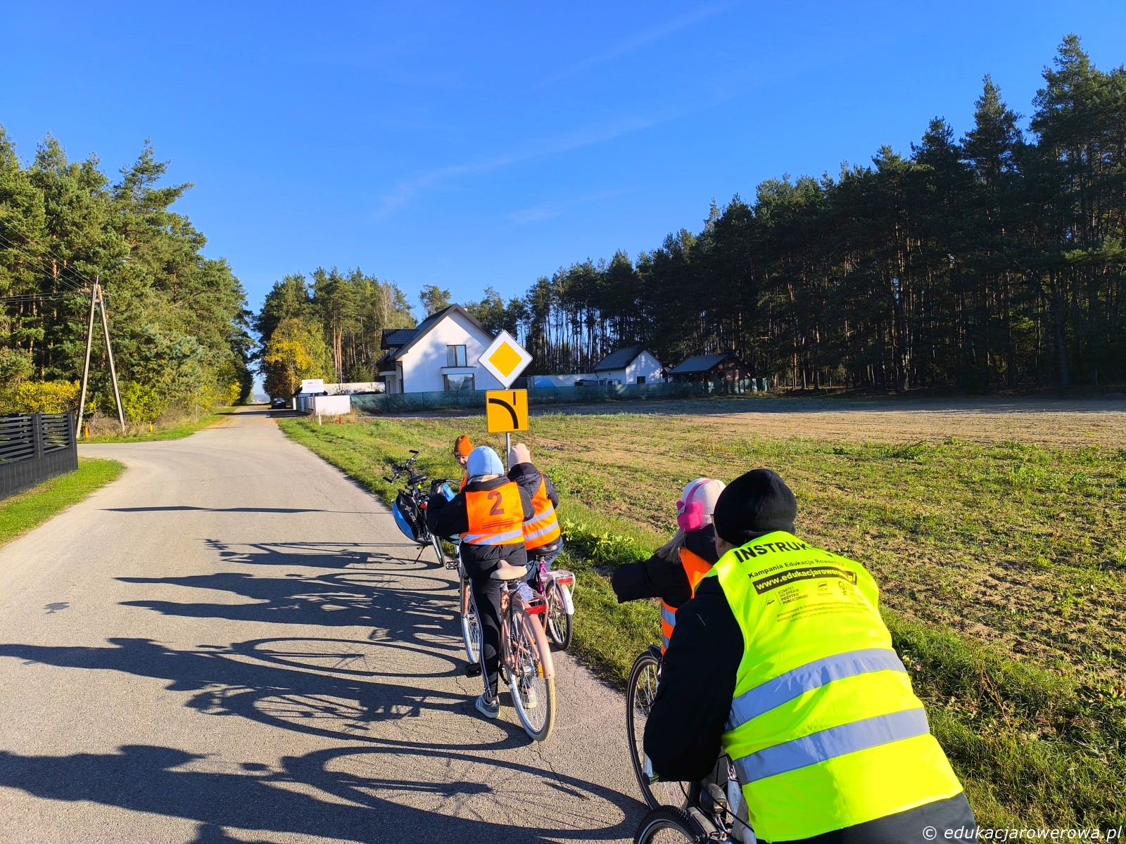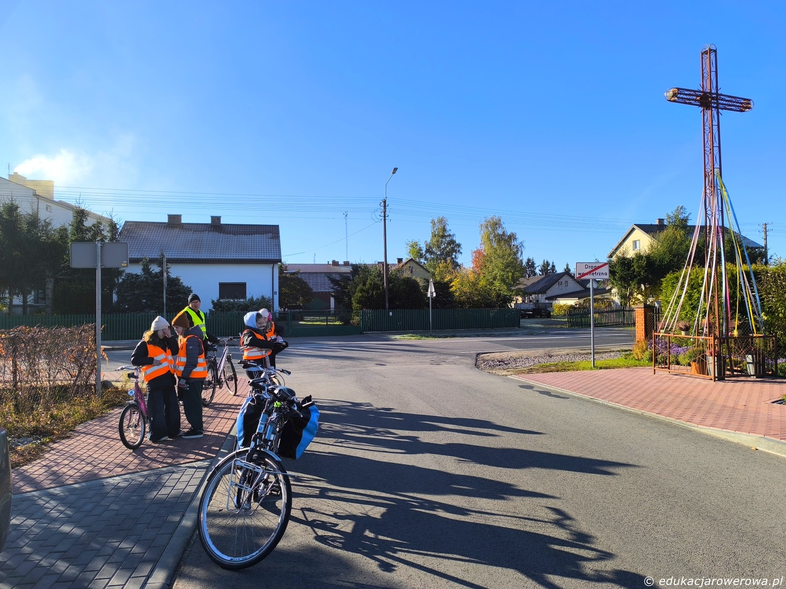 Druga część grupy jedzie tymczasem w przeciwnym kierunku, gdzie omawiamy zasady ruchu panujące na drodze wewnętrznej jak i jej połączeniu z drogą publiczną.