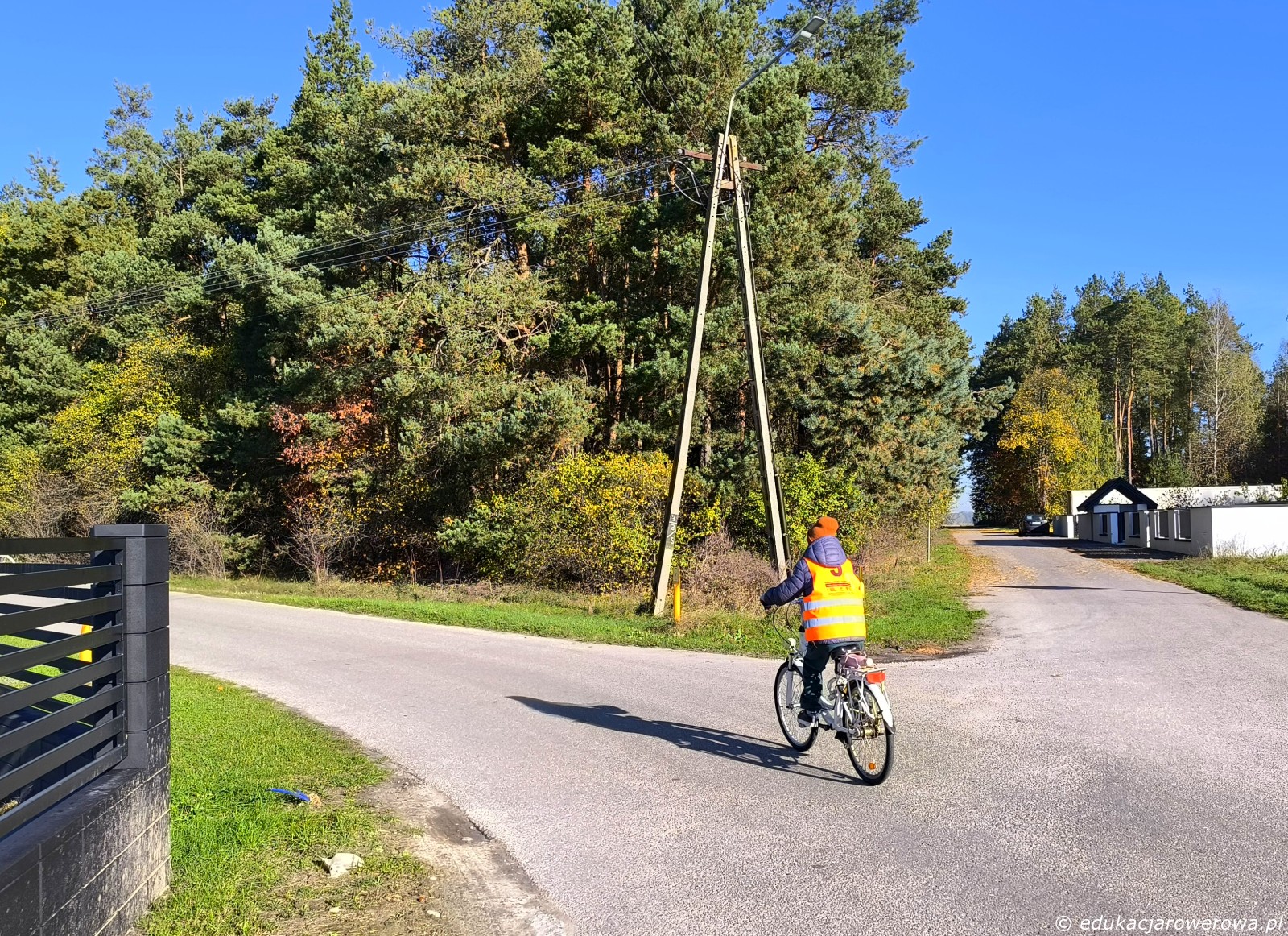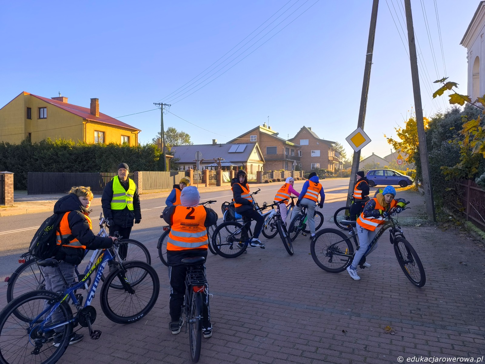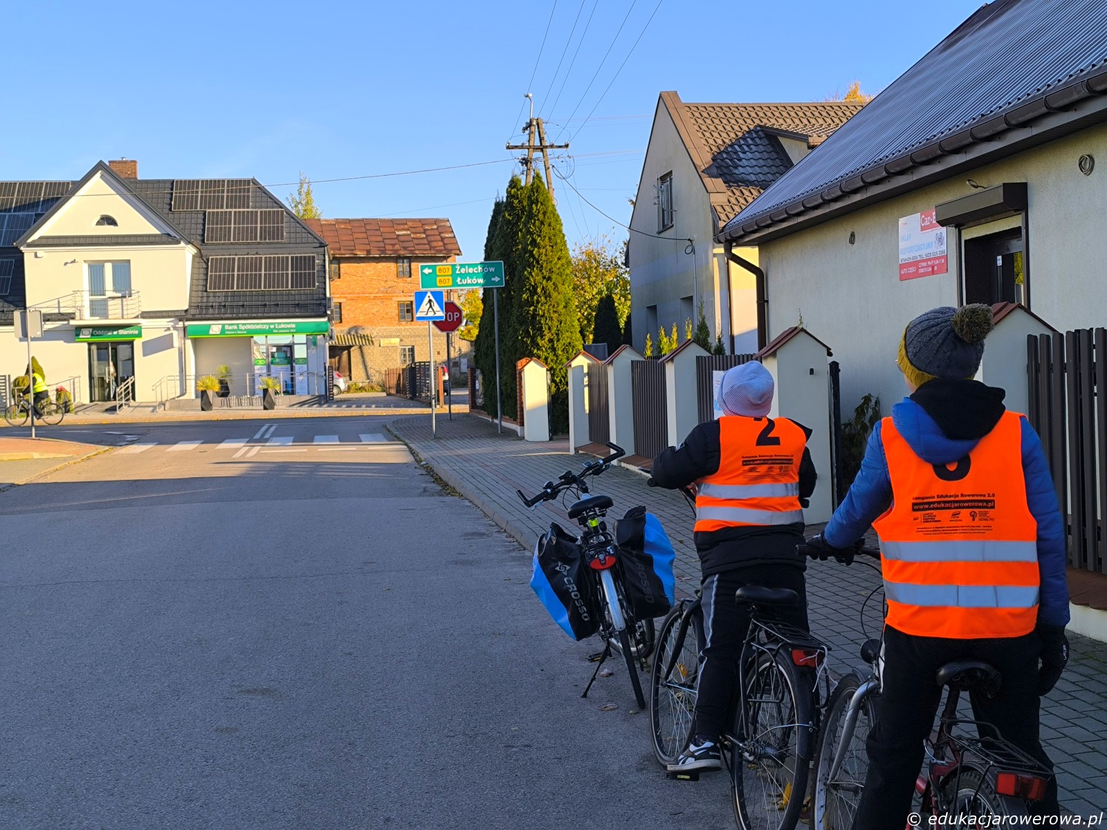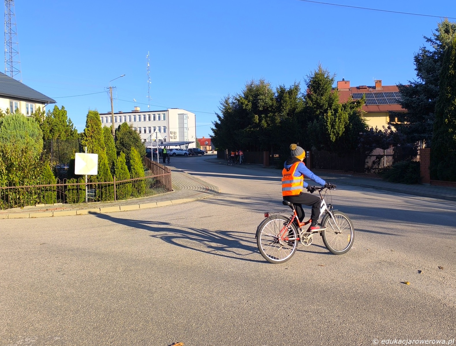 Druga część grupy jedzie tymczasem w przeciwnym kierunku, gdzie omawiamy zasady ruchu panujące na drodze wewnętrznej jak i jej połączeniu z drogą publiczną.