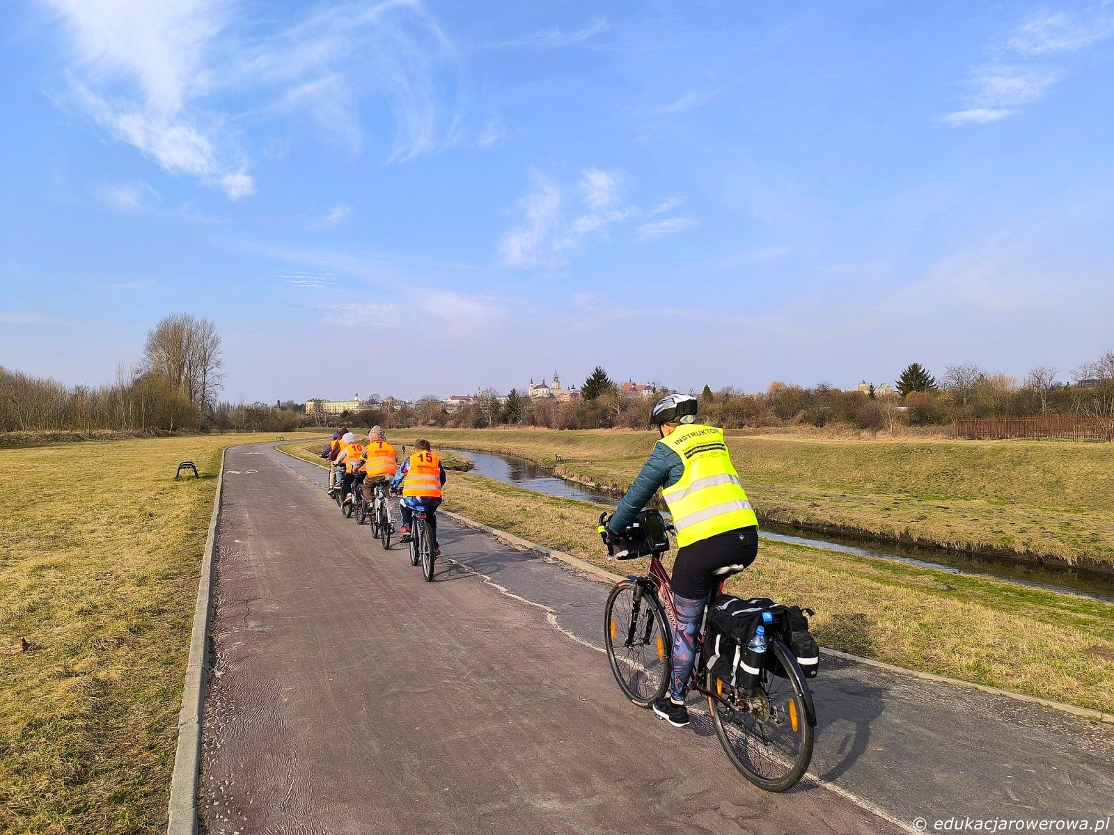 Trzecia grupa dogania nas na trasie rowerowej wzdłuż Bystrzycy.