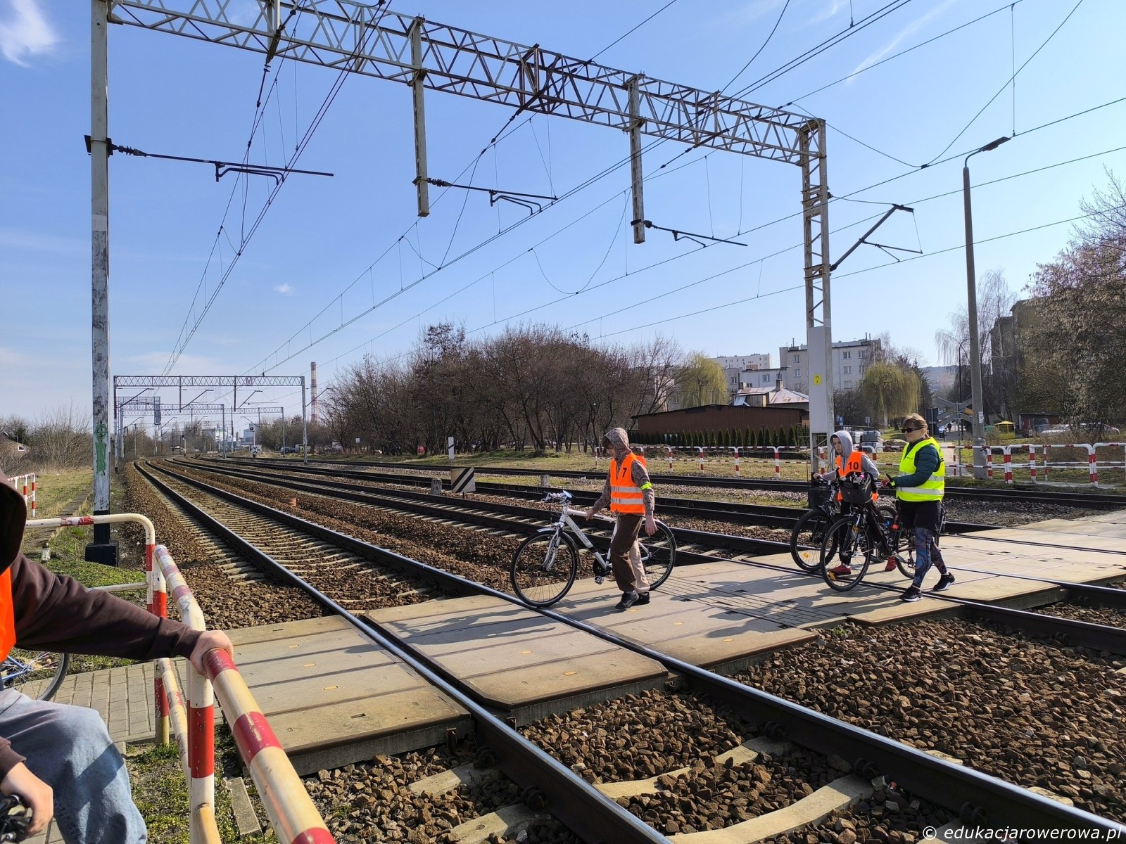W okolicy szkoły znajduje się przejście przez linię kolejową z czterema torami. Pojechaliśmy tam z uczniami by uczulić ich na bezpieczeństwo w tym miejscu – konieczność przeprowadzenia roweru i obserwacji (a także nasłuchiwania) obu kierunków i nadjeżdżających pociągów.