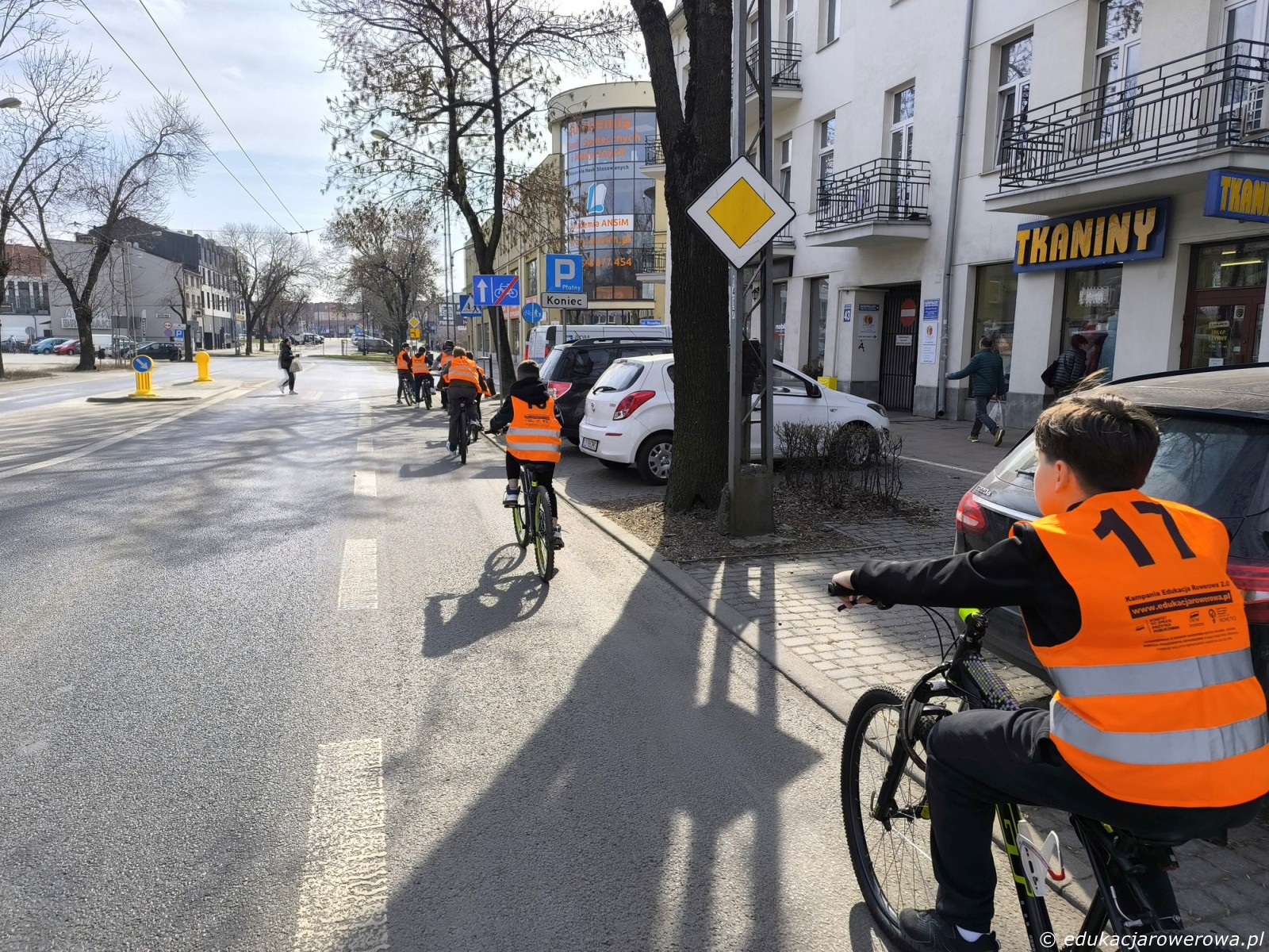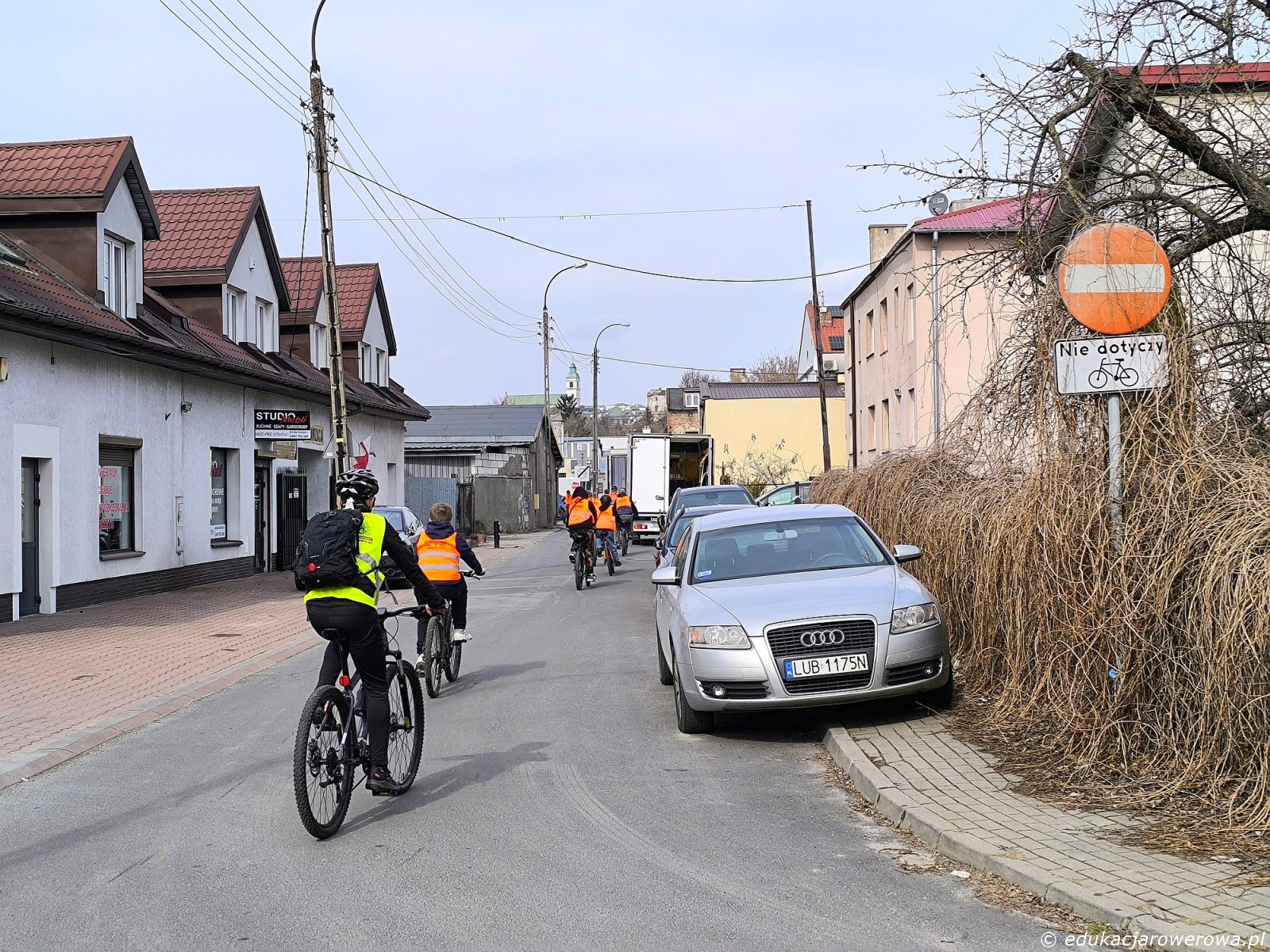 W okolicy mieliśmy także dostępną ulicę z kontraruchem więc uczniowie pojechali nią do końca „pod prąd”, nawrócili i pojechali ponownie „z prądem”.