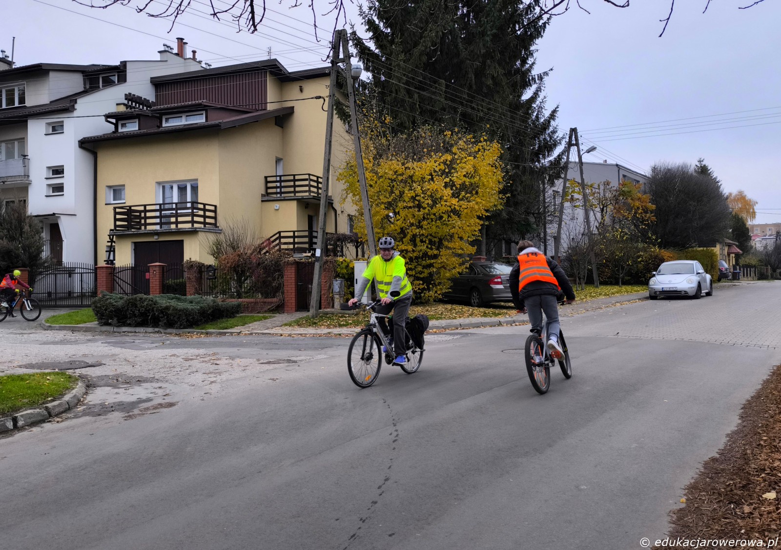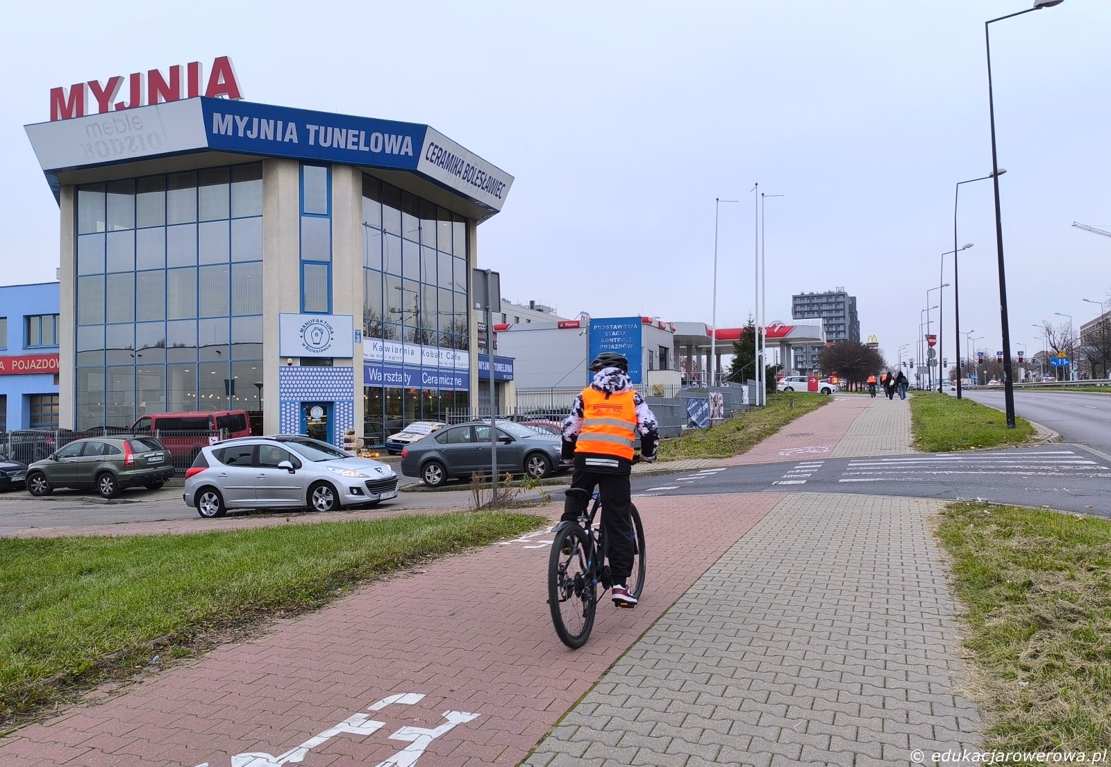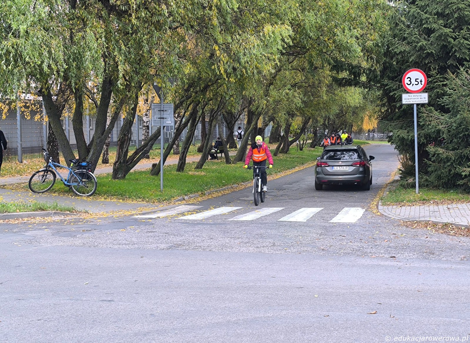 I jeszcze jedno ćwiczenie – przejazdy dla rowerów przez drogę 2×2, zachowanie ostrożności i uwaga na samochody na drugim pasie ruchu.