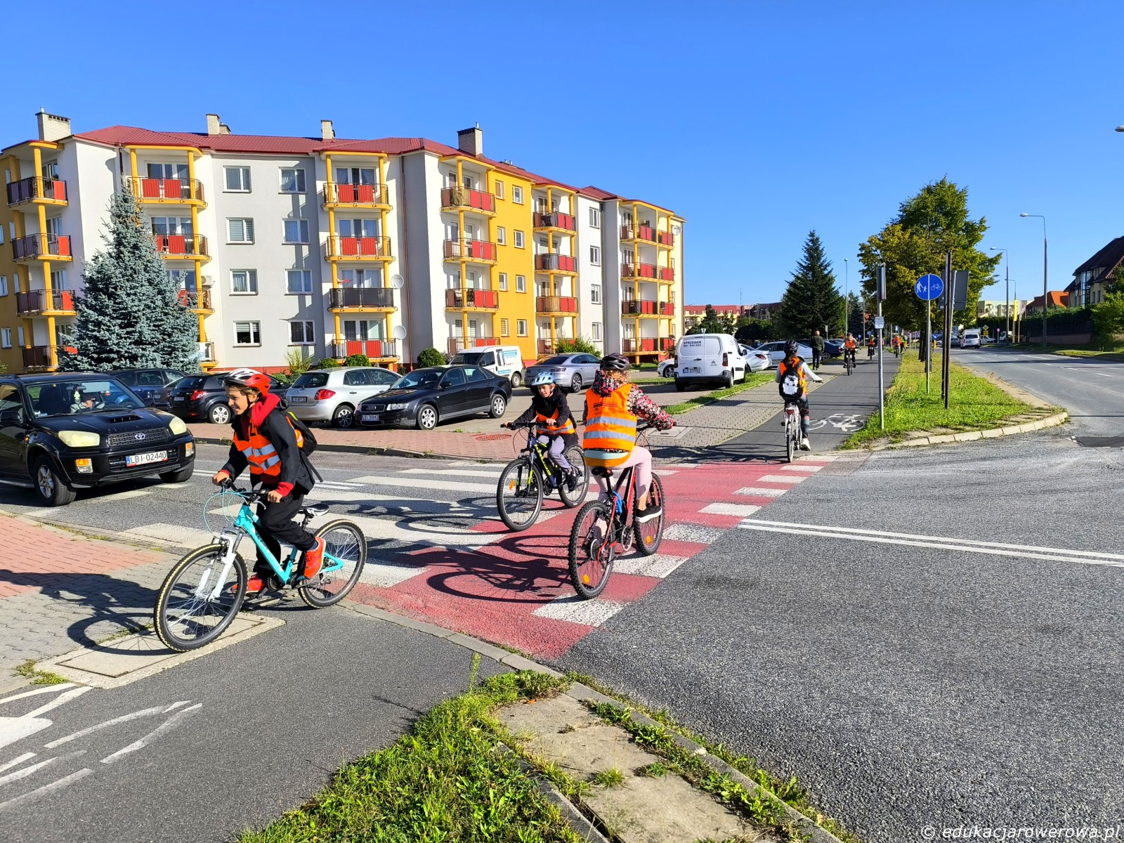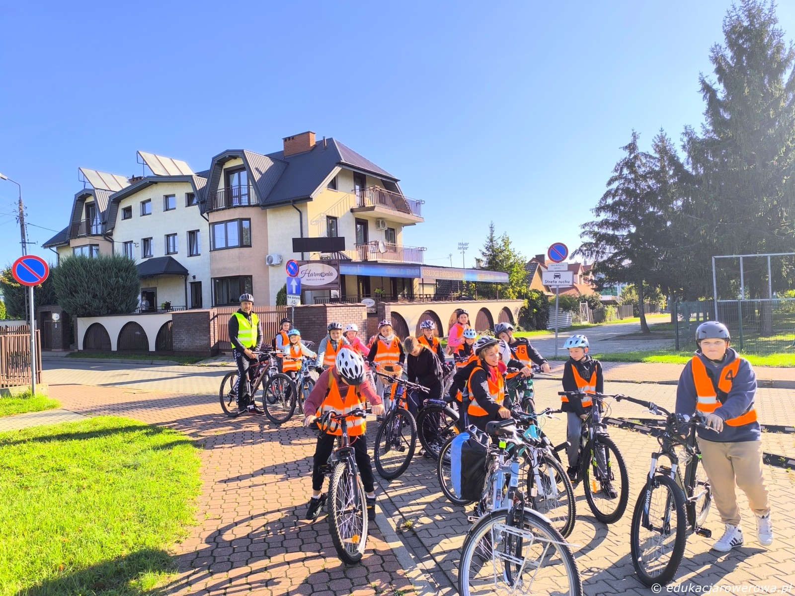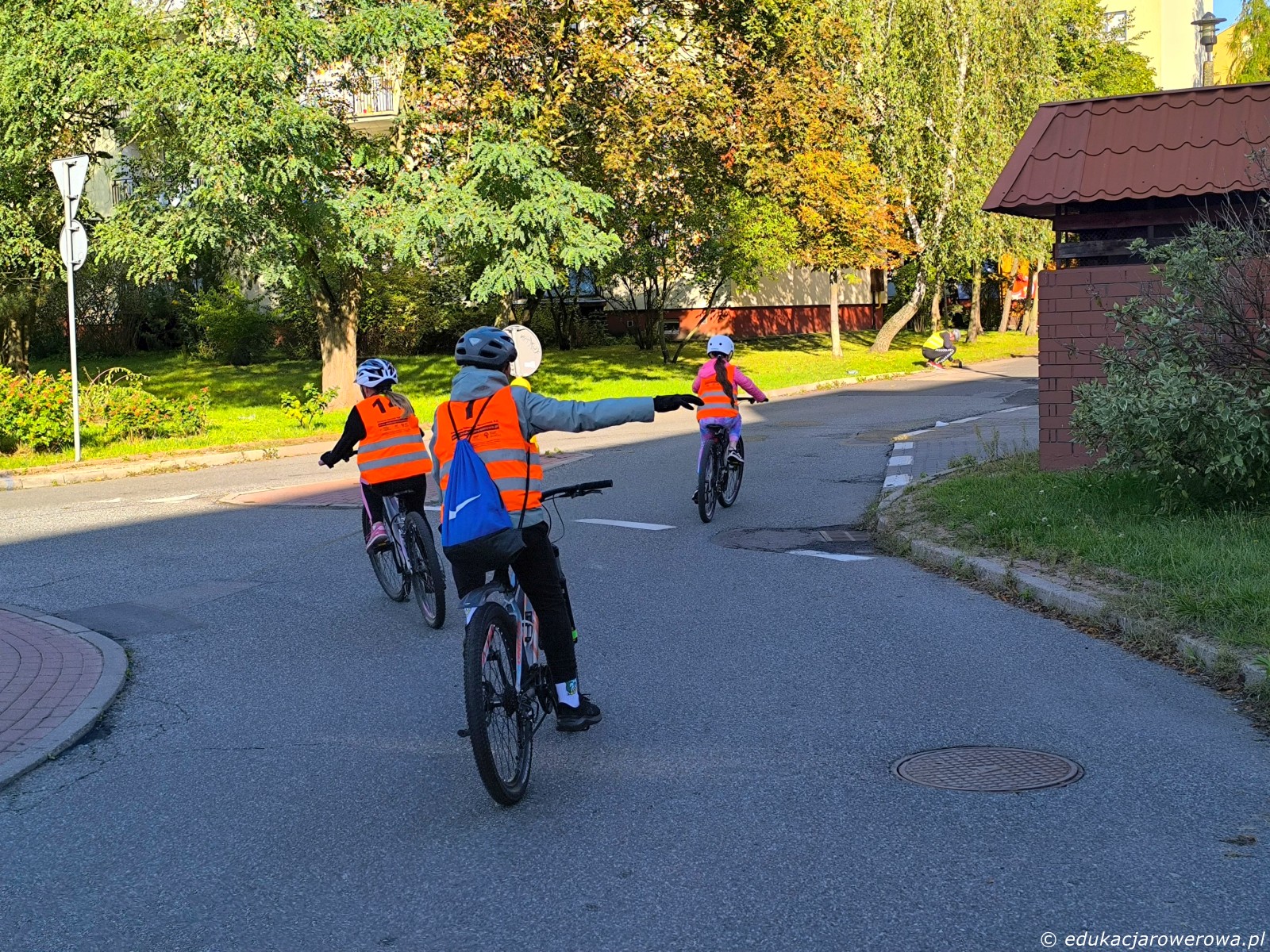 Po wstępie i ćwiczeniach koordynacyjnych przy szkole pierwsza grupa rusza na ulice Białej Podlaskiej. Tu wyjazd ze szkoły czyli włączanie się do ruchu.